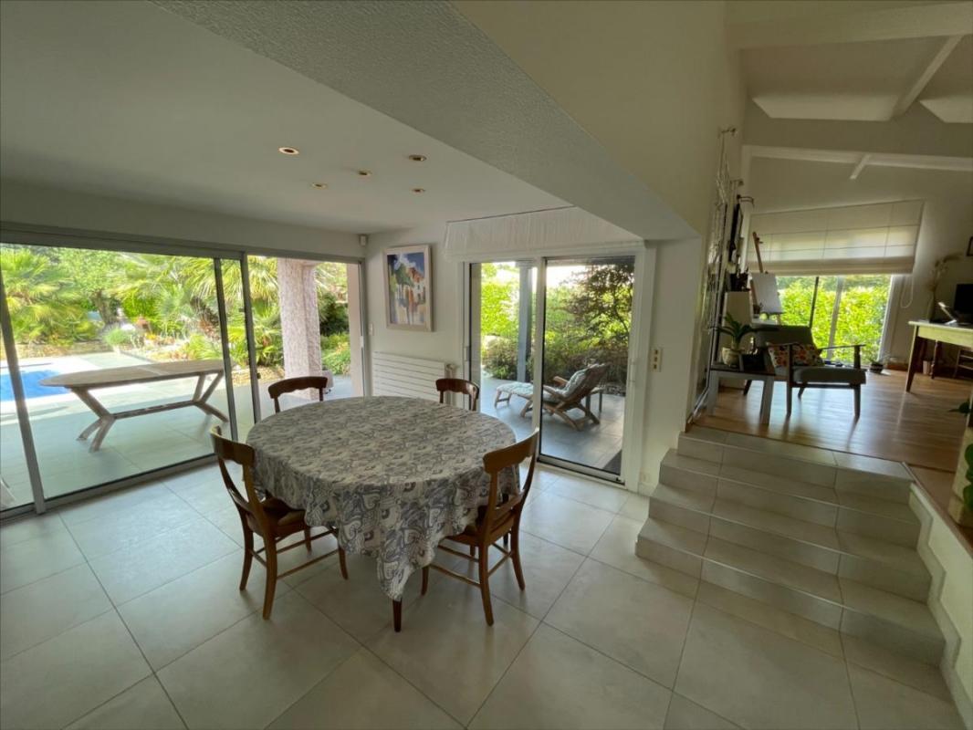 Proche toutes commodités, à seulement 550m de la gare, belle maison aux volumes généreux avec nombreux rangements d’environ 167m² habitables sur parcelle close de plus de 1400m² comprenant : Hall d’entrée avec placards (12,3m²), grande pièce de vie lumineuse avec salle à manger, salon avec cheminée, et cuisine ouverte aménagée et équipée pour environ 62m² donnant sur terrasse, dégagement, chambre avec salle d’eau (13,6m²), WC et chambre parentale avec salle de bains et placards (19,8m²).ETAGE INFERIEUR : dégagement, chambre d’amis – lingerie (14m²), salle d’eau avec WC (7,6m²) et 4ème grande chambre de plus de 20m². chaufferie, buanderie et cave. Belle terrasse donnant sur jardin clos avec piscine chauffée (11m x 5m).Double garage ouvert de plus de 30m², local jardin d’environ 6m², local technique pour piscine. Autres : ouvertures alu (double vitrage), chauffage gaz de ville, interphone, arrosage automatique… Prix HNI : 460 575 € dont honoraires TTC : 3,5% du prix net vendeur soit 15 5750 €. Les informations sur les risques auxquels ce bien est exposé sont disponibles sur le site Géorisques : www. georisques. gouv. fr