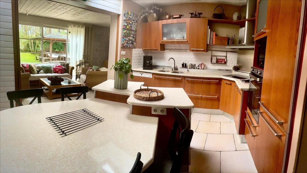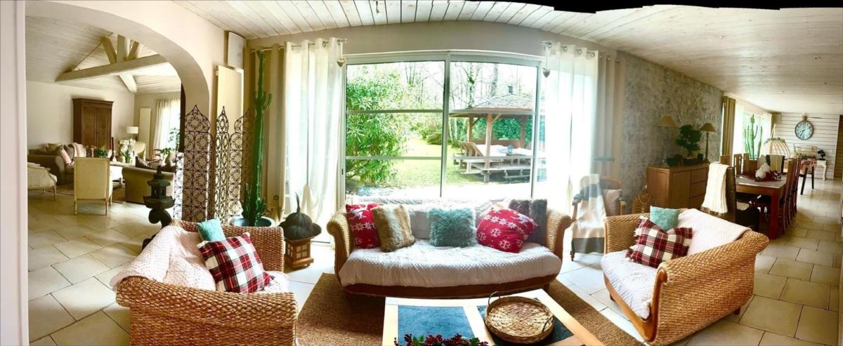 Proche toutes commodités, (commerces, transports…) sur un parc arboré de plus de 2800m² (la nature aux portes de la ville), magnifique maison d’architecte en parfait état, de plain-pied d’environ 287m² comprenant : Hall d’entrée, wc, grand salon (cheminée) (env 54m²), séjour sur jardin (env 48m²), cuisine aménagée et équipée avec cheminée (env 21m²), 3 chambres dont une avec salle de bains privative (env 15m²), 1 chambre (env 21m²), une suite parentale avec dressing et salle de bains/wc (env 44m²), dégagement, salle d’eau/wc, chaufferie. Préau 2 voitures (facilement transformable en garage), parkings, atelier, terrasses. Le tout sur une parcelle de 2831m² close et arborée. PRIX : 1 086 750€ HNI (dont 36 750€ d’honoraires à la charge de l’acquéreur). Les informations sur les risques auxquels ce bien est exposé sont disponibles sur le site Géorisques : www. georisques. gouv. fr